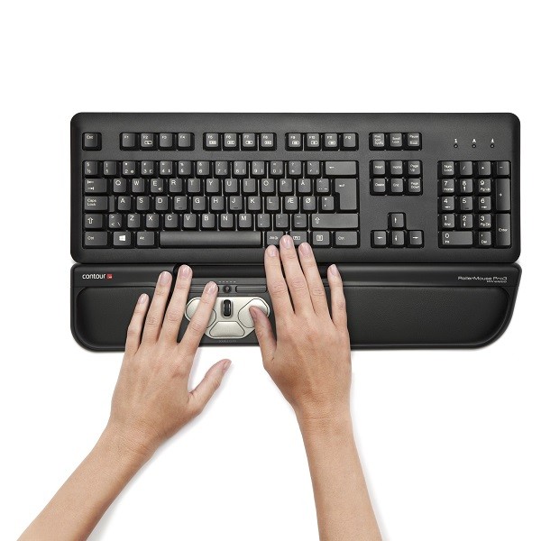 Met behulp van de Contour RollerMouse Pro3 hoeft u tijdens het werken op uw computer niet meer te wisselen tussen uw muis en uw toetsenbord. Doordat u minder vaak uw arm en hand hoeft op te tillen en te verplaatsen tussen muis en toetsenbord, vermindert u de spanning vanuit uw nek naar de armen. Met de Contour Rollermouse Pro 3 kunt u langdurig ergonomisch werken achter uw computer.
