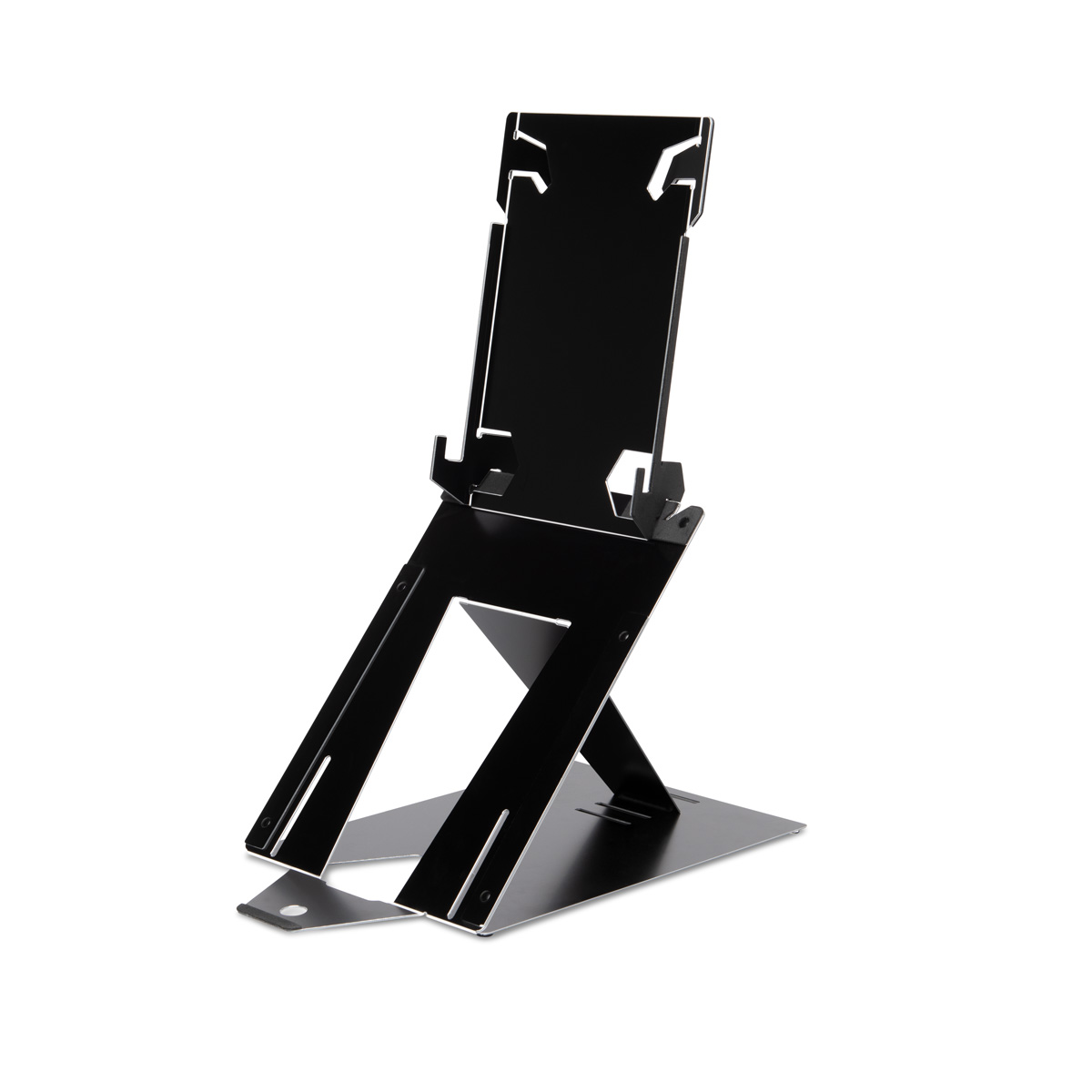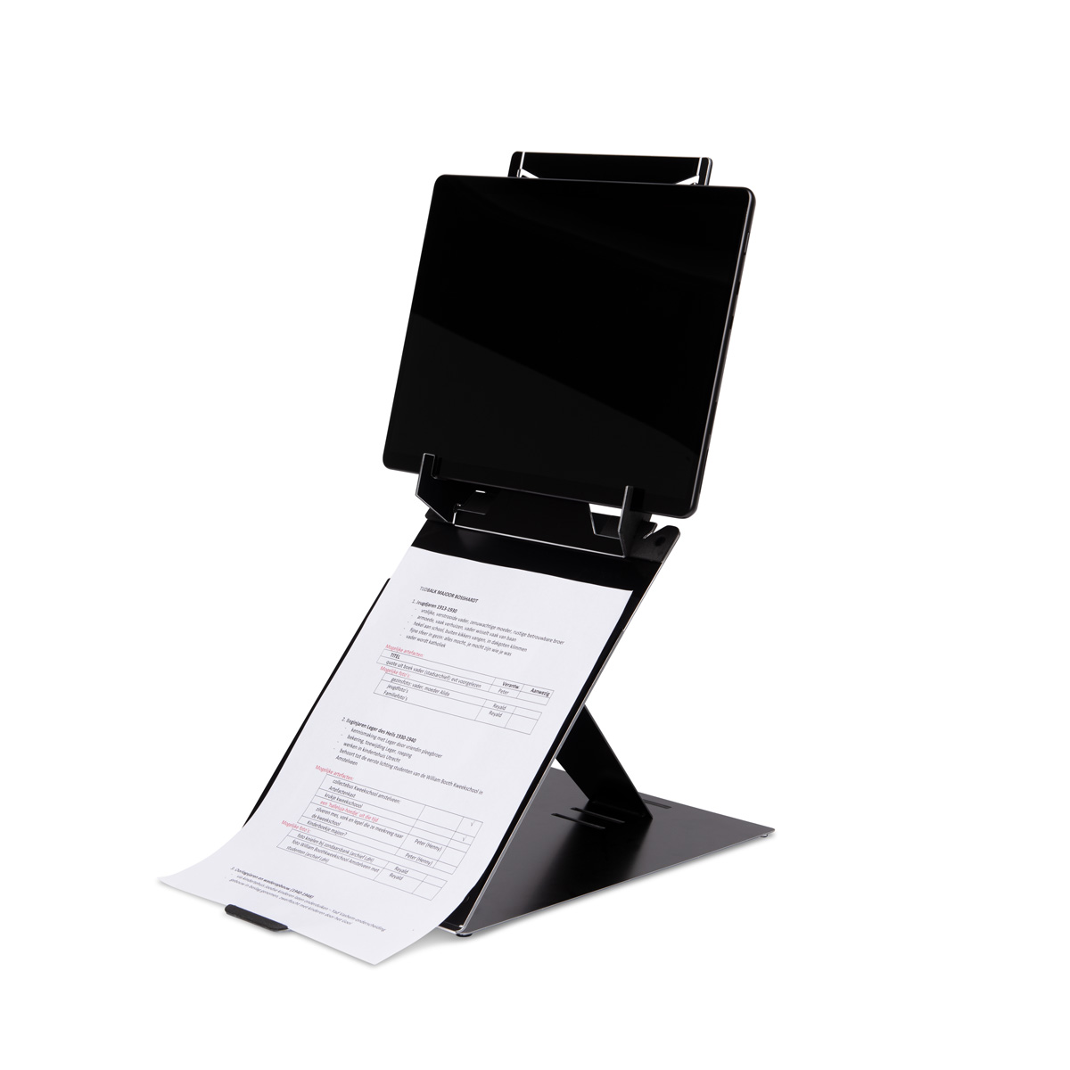 Lichte 2-in-1 standaard voor laptop en tablet, verstelbaar in 4 hoogtes. Vermindert nek- en schouderklachten. Ultradun en ideaal voor onderweg.