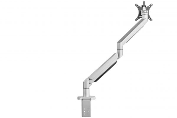 De Galaxy Enkel Monitorarm Gasveer - zilver biedt een ruimtebesparende en solide monitoroplossing is …