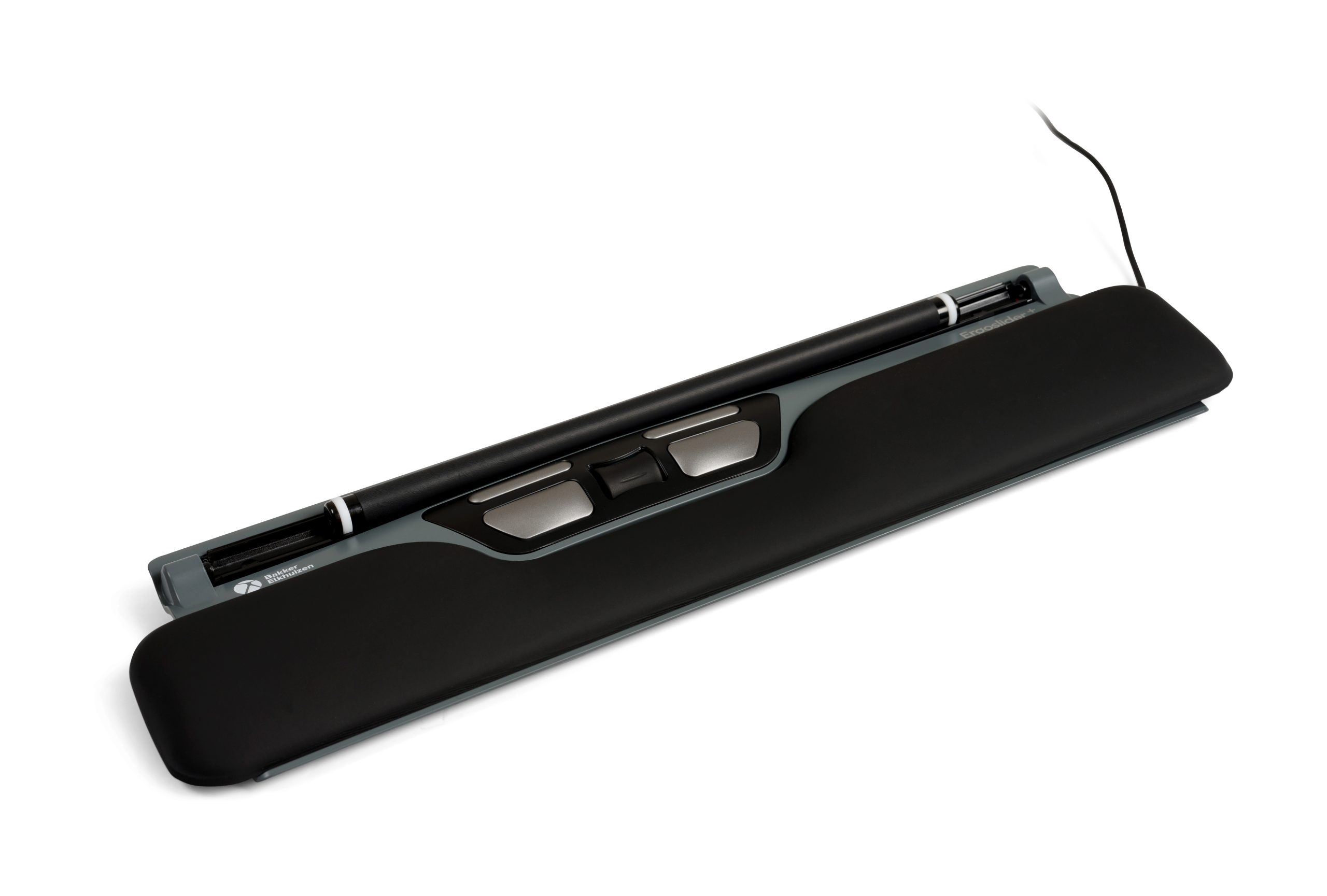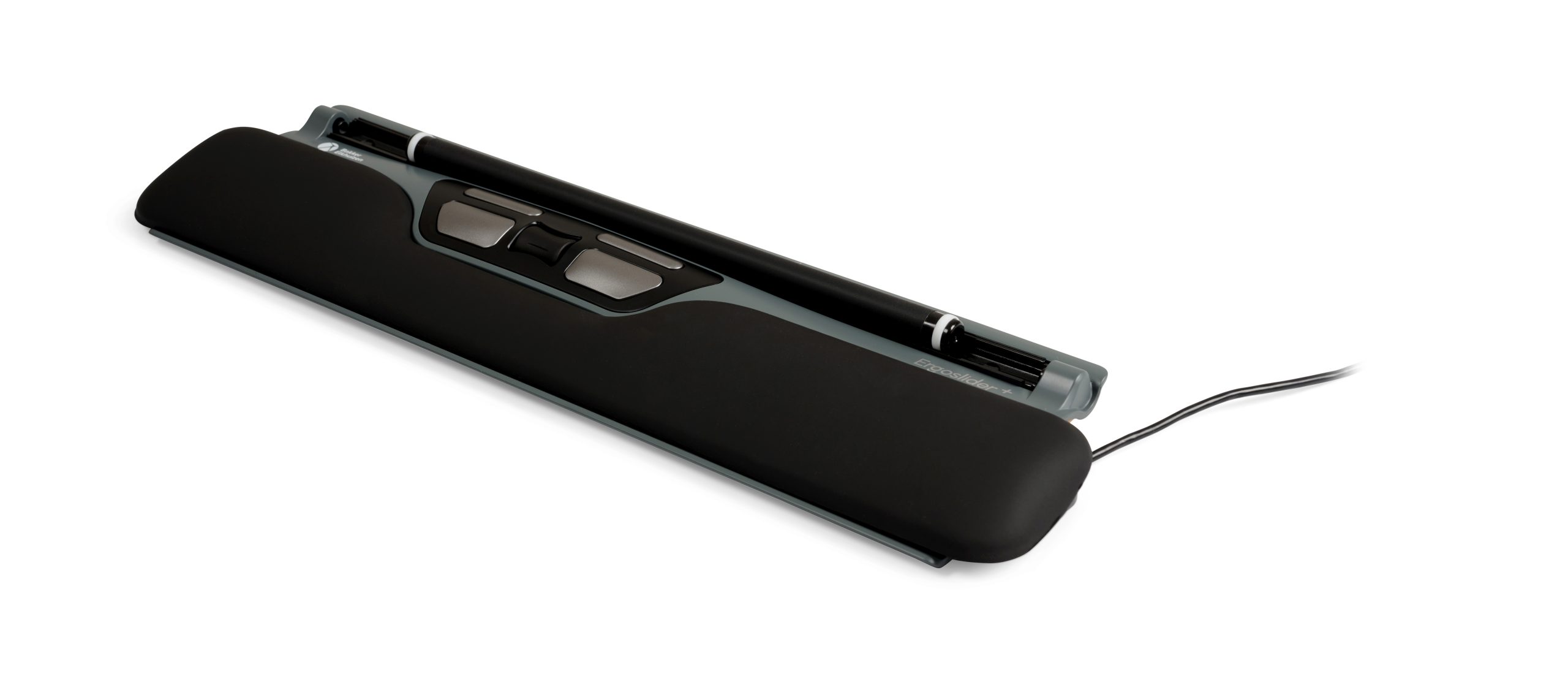De ErgoSlider Plus maakt gebruik van een aanklikbare rollerbar, die je met je vingertoppen of duimen bedient. Je hoeft dus geen grote bewegingen met je arm meer te maken. Je handen blijven ontspannen op de verwisselbare polssteun liggen terwijl je met precisie de cursor beweegt. Of je nu links- of rechtshandig bent, deze muis werkt met beide handen net zo prettig.