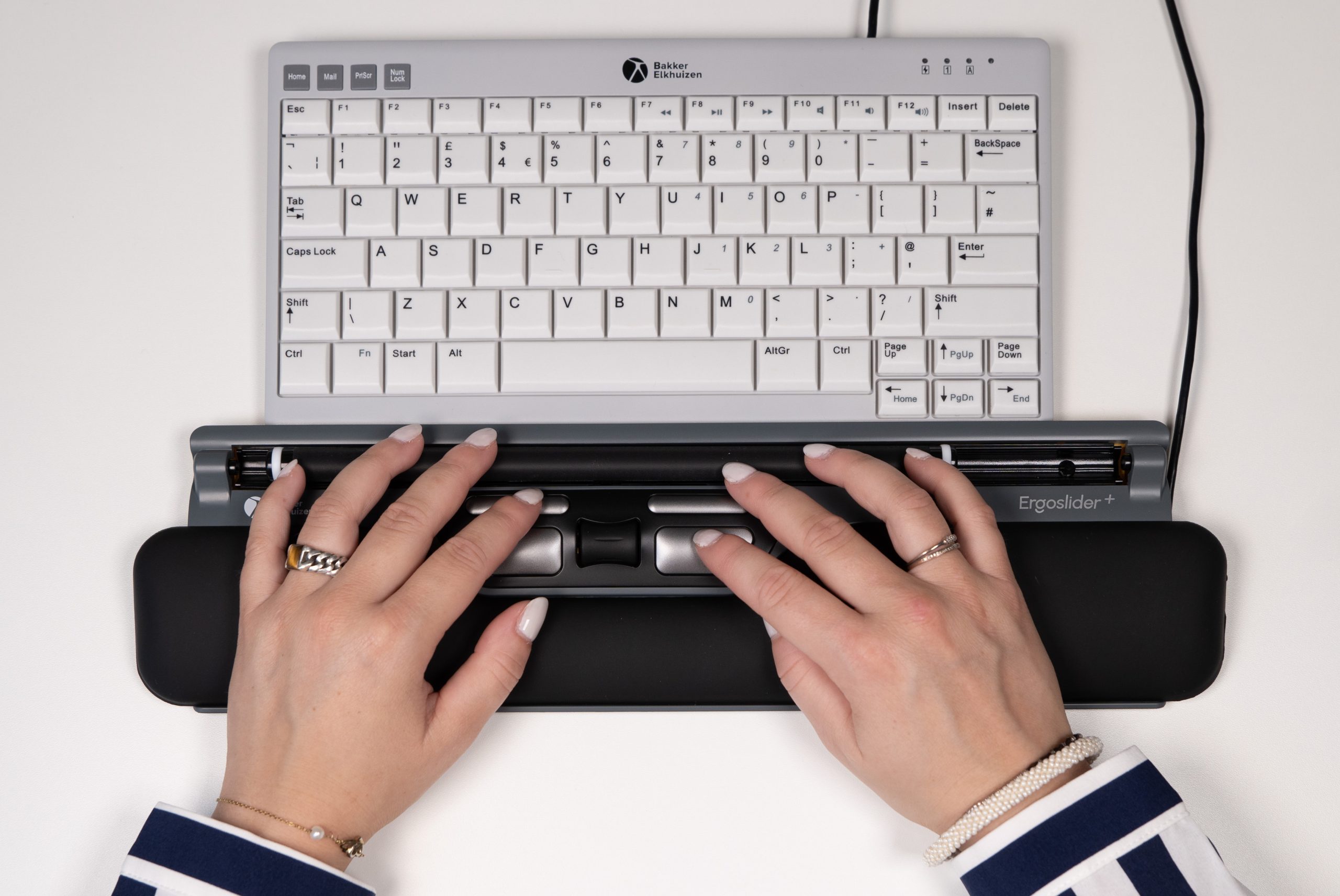 Werken met een standaardmuis kan op termijn leiden tot overbelasting van je nek, schouders en arm. De ErgoSlider Plus biedt een slimme oplossing: deze centrische muis plaats je direct vóór je lichaam, zodat je met beide handen kunt navigeren. Dat zorgt voor een meer ontspannen werkhouding, voorkomt het reiken naar de muis en verdeelt de spieractiviteit. Het resultaat? Meer comfort en minder kans op RSI-klachten.