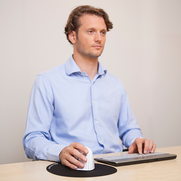 De Evoluent V4 Bluetooth Muis is één van de meest geavanceerde, optische verticale muizen. Deze anti- RSI-muis lijkt erg op de traditionele muis en heeft daardoor een korte gewenningstijd. Door de verticale positie van de Evoluent Muis worden de onderarm en pols in een neutrale positie geplaatst, waardoor spierspanning in uw onderarm afneemt en klachten aan uw pols, arm en schouders worden verminderd, verholpen of zelfs voorkomen. De verticale muizen van Evoluent kenmerken zich door eenvoud in gebruik en een prachtig design.